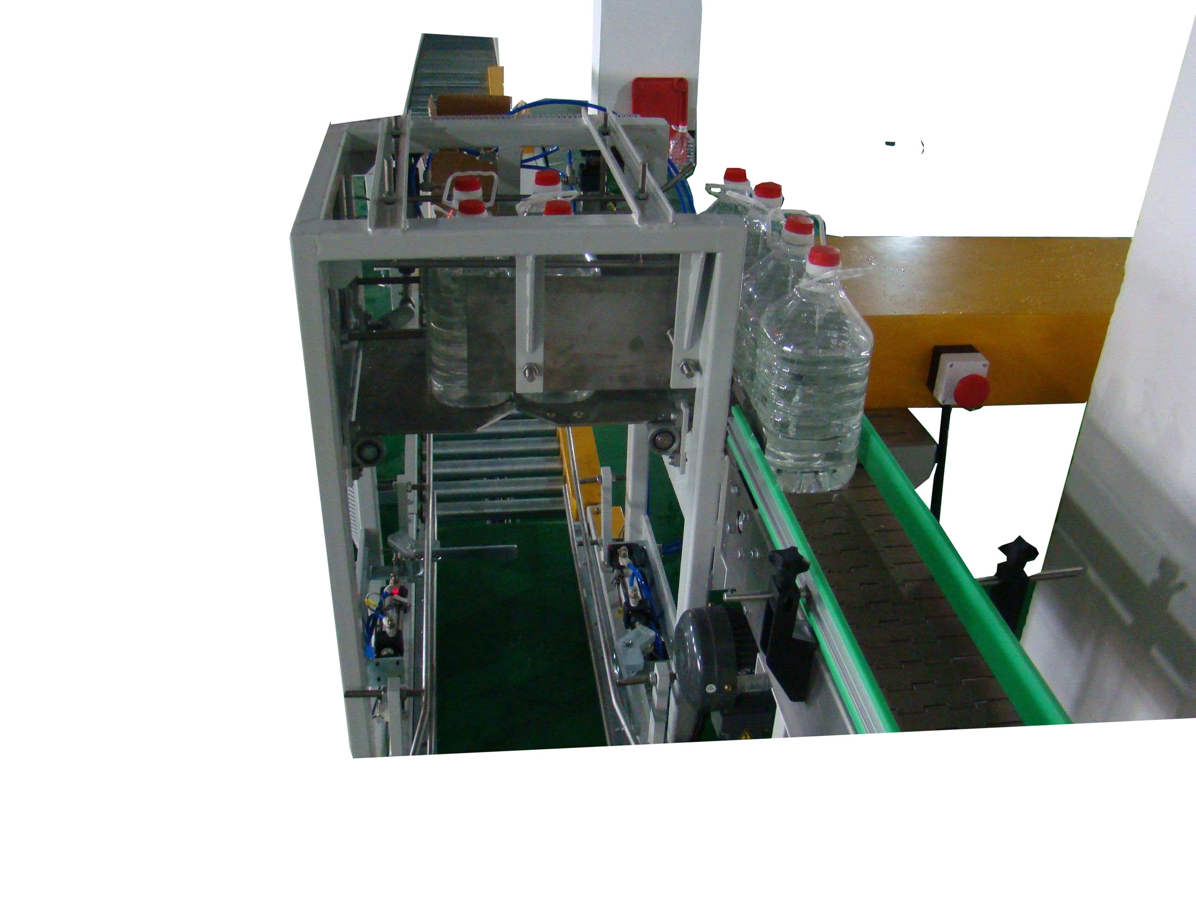 跌落式装箱机是一种根据桶装瓶型研发设计而出的经济型自动装箱机,主要采用的设计原理是根据产品的重量变大、下落引力大,然后从高位自动跌落入固定好的纸箱内,即完成产品的一次装填;可以根据产能设计一次一箱或多箱同时填充,整机系统采用PLC 控制,可以使产品精准定位、装箱规整;是企业实现无人化生产线必不可少的设备,可让企业大大节省人力和场地空间,精化管理。